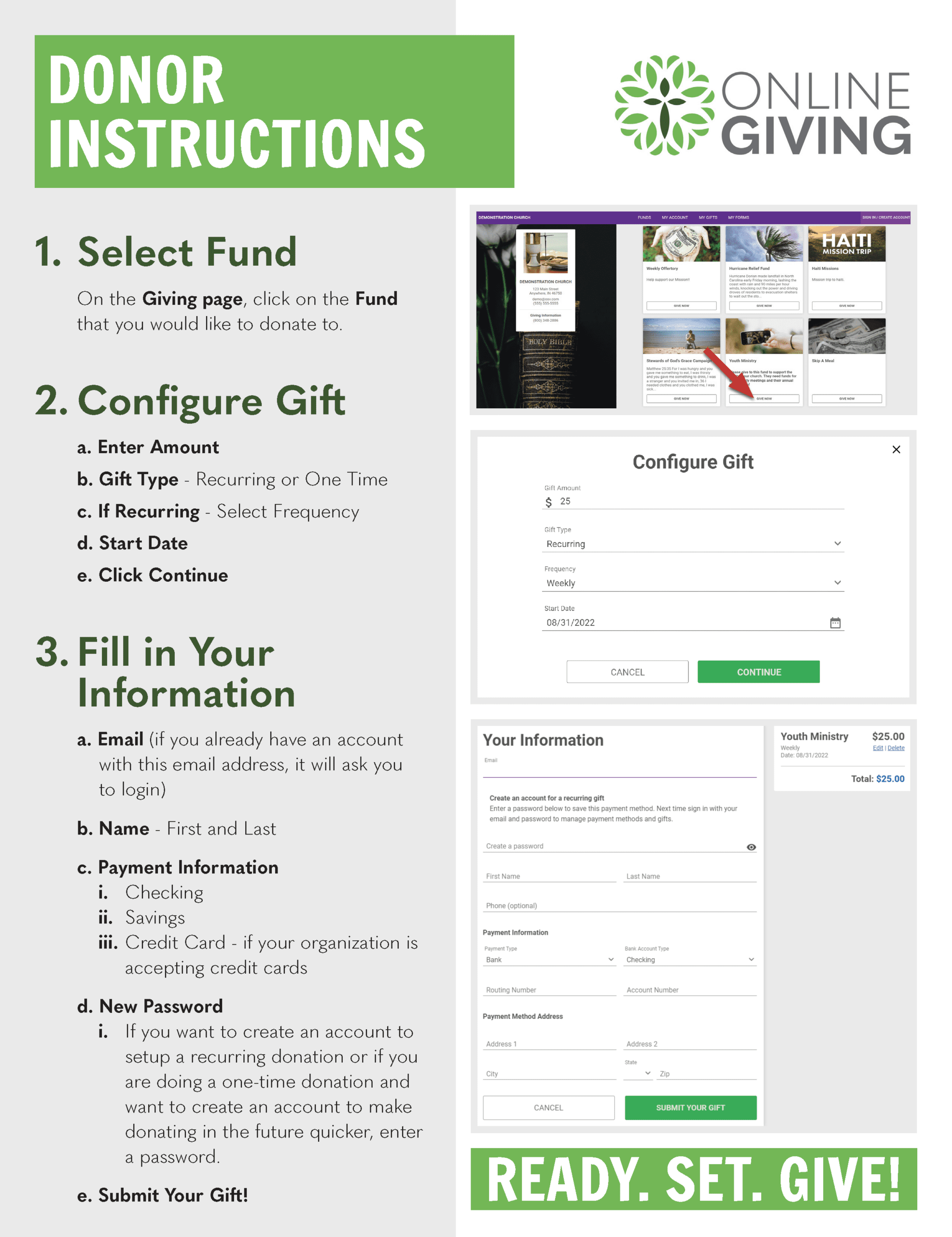 • Secure giving using your credit card/debit card. Encrypted payment process to protect your data.