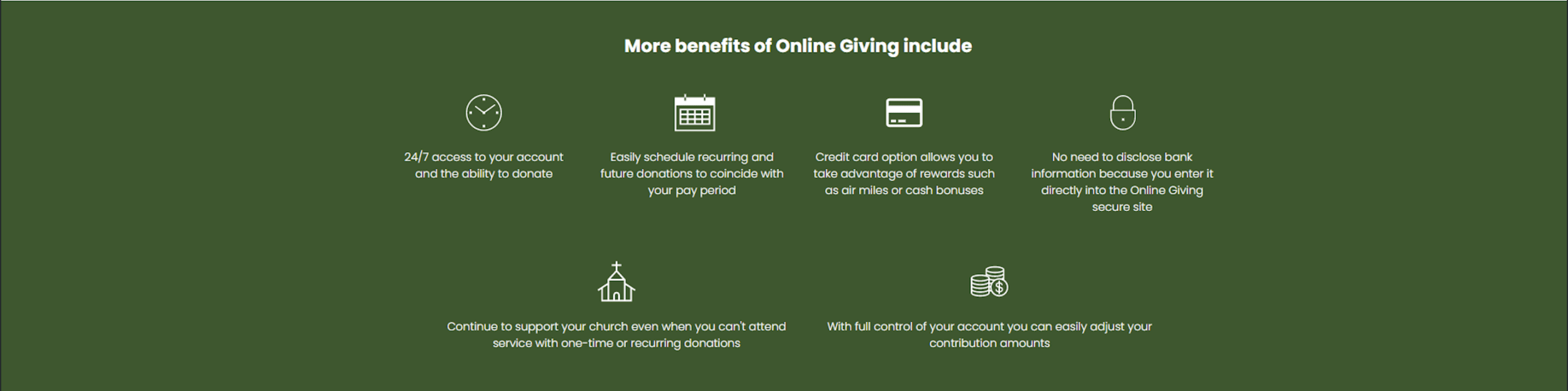 • Forget your envelope? Use Online Giving to keep up on offertory. Select the Online Giving link, it’s quick and easy. Your support throughout the year helps sustain our church.